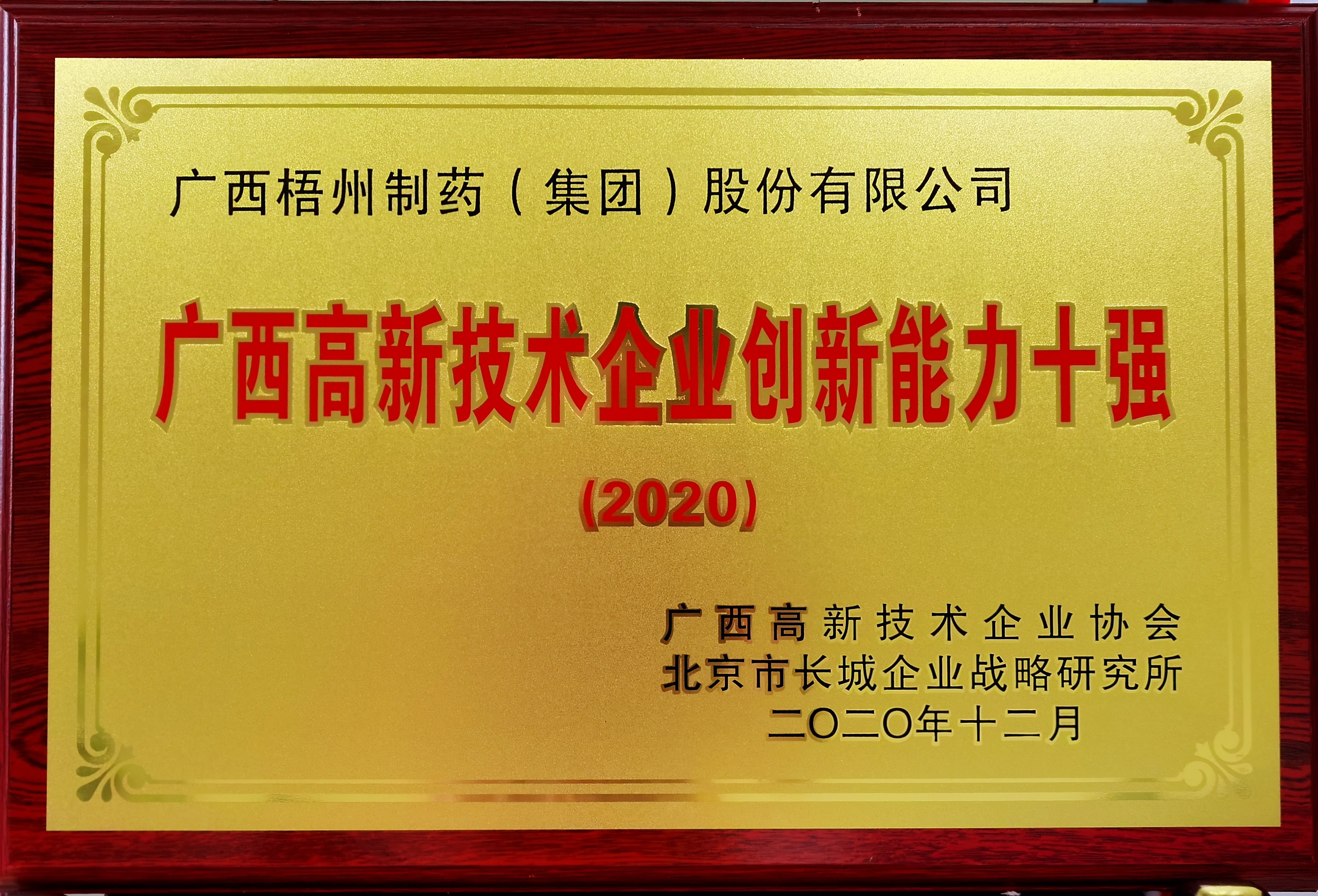榮獲2020年廣西高新技術(shù)企業(yè)創(chuàng)新能力十強(qiáng)稱號