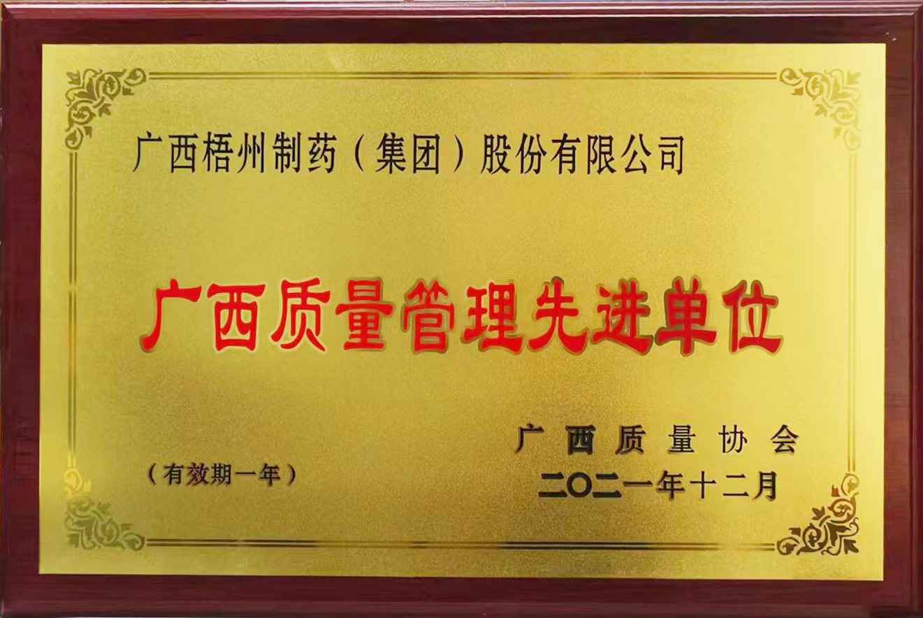 榮獲2021年廣西質(zhì)量管理先進單位稱號