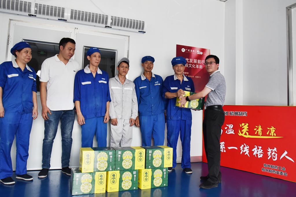 炎炎夏日送清涼,絲絲關(guān)愛入心田。一份關(guān)愛、一份叮嚀、一份囑托,切切實(shí)實(shí)把防暑降溫和安全生產(chǎn)落實(shí)到一線每一名職工的心中。此次“送清涼”活動(dòng)的開展體現(xiàn)了梧州制藥重視員工安全、關(guān)心員工健康的工作理念,更是落實(shí)“我為職工辦實(shí)事”的具體實(shí)踐,讓廣大一線職工真切感受到“娘家人”就在身邊。