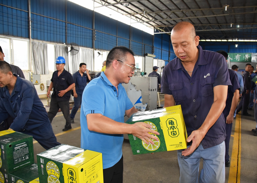 “天氣這么熱,大家辛苦了!”“注意自我保護(hù),記得多喝水!”“崗位都備有防中暑藥品,主任們要留意職工的身體狀態(tài), 合理安排休息?!苯?,梧州制藥領(lǐng)導(dǎo)班子分別帶上清涼飲品,到各車間慰問奮戰(zhàn)在高溫崗位的職工,聲聲叮嚀,讓職工們?cè)谑⑾闹懈惺艿搅岁囮嚽鍥觥?/span>
