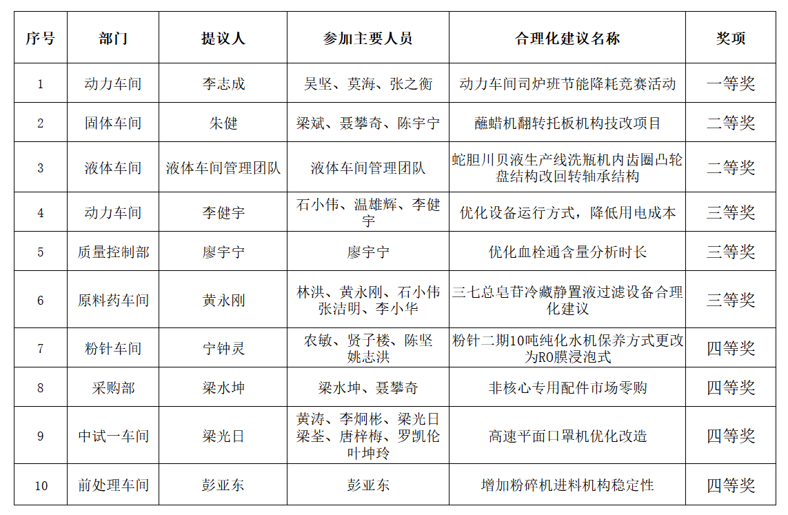 固體車間員工提出的《蘸蠟機翻轉(zhuǎn)托板機構(gòu)技改項目》通過對蘸蠟機翻轉(zhuǎn)托盤角度、翻轉(zhuǎn)氣缸進(jìn)氣速度調(diào)整等改造工作,每天約減少200-300只殘留蠟丸,既有效降低人工輔助落丸的安全隱患,同時減少了成品廢品率和停機清理時間,每年增加經(jīng)濟效益約5萬元。