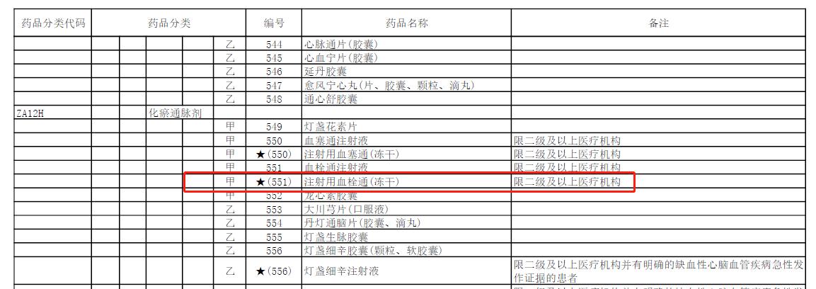 2023年1月18日,國家醫(yī)療保障局正式對(duì)外公布2022年《國家基本醫(yī)療保險(xiǎn)、工傷保險(xiǎn)和生育保險(xiǎn)藥品目錄》,其中梧州制藥公司獨(dú)家生產(chǎn)的國家基藥——注射用血栓通(凍干)由2021年“限二級(jí)及以上醫(yī)療機(jī)構(gòu)的中風(fēng)偏癱或視網(wǎng)膜靜脈阻塞患者”調(diào)整為:“限二級(jí)及以上醫(yī)療機(jī)構(gòu)”。并于2023年3月1日起正式執(zhí)行。