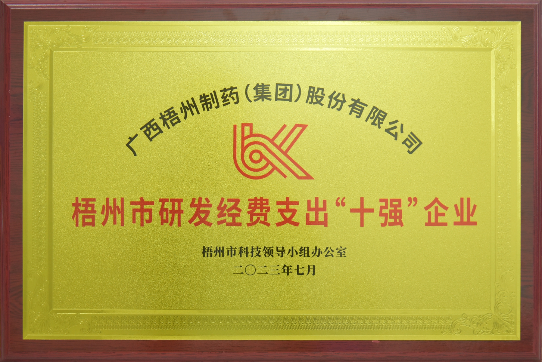 廣西梧州制藥(集團)股份有限公司獲評為梧州市研發(fā)經(jīng)費支出“十強”企業(yè)