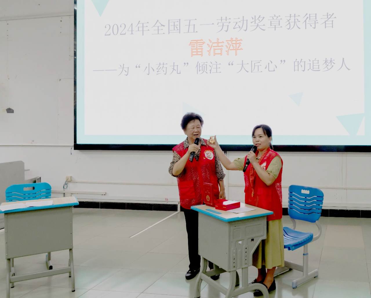 全國五一勞動獎?wù)?、“廣西工匠”獲得者、自治區(qū)級非物質(zhì)文化遺產(chǎn)“中華跌打丸”制作技藝第五代傳承人雷潔萍結(jié)合學(xué)生時代的求學(xué)故事、工作之后的奮斗歷程,用樸實真摯的語言,以自己二十多年的成長軌跡為脈絡(luò),向在座師生講述了自己匠心筑夢的心路歷程,詮釋了新時代勞模精神、勞動精神和工匠精神的內(nèi)涵與要求,引導(dǎo)廣大學(xué)生成為有理想、有信念、有擔(dān)當(dāng)?shù)男聲r代好少年。