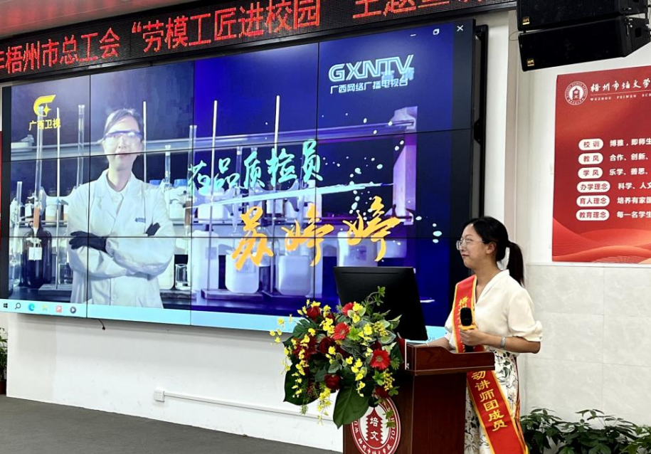 本次由梧州市總工會(huì)、梧州市教育局主辦的“勞模工匠進(jìn)校園”主題宣講,為勞模和學(xué)子之間搭建了一座近距離溝通的橋梁,讓廣大學(xué)子們通過傾聽工匠故事,感受工匠精神,激勵(lì)青年一代奮發(fā)圖強(qiáng),向勞模學(xué)習(xí)、向工匠看齊。宣講會(huì)上,“廣西五一獎(jiǎng)?wù)隆薄皬V西工匠”獲得者蘇婷婷圍繞“要有積極向上的人生態(tài)度、要有持之以恒的學(xué)習(xí)精神、要有不畏艱辛的刻苦干勁”三個(gè)方面向在場(chǎng)師生們分享自己從學(xué)生生涯到工作時(shí)期二十多年的成長(zhǎng)歷程和故事。