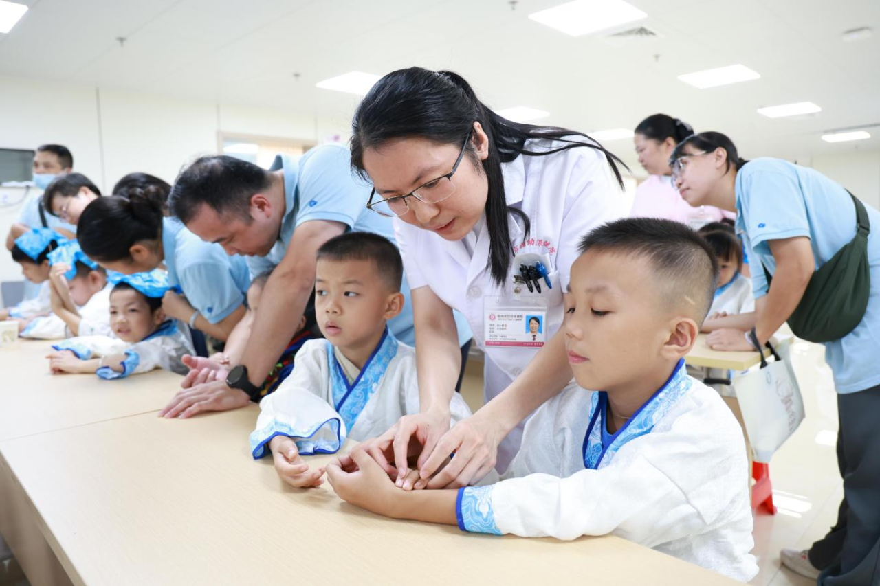 活動現(xiàn)場,資深中醫(yī)師通過寓教于樂的方式,講述著中醫(yī)基礎(chǔ)理論、經(jīng)絡(luò)穴位知識以及中醫(yī)藥在日常生活的應(yīng)用。孩子們不僅聽得津津有味 ,還積極舉手提問互動,從藥材的形狀、生長環(huán)境到用藥知識等,都表現(xiàn)出對中醫(yī)藥文化強烈的求知欲望。