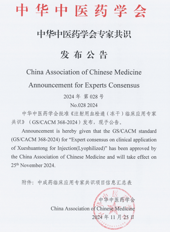 現(xiàn)已發(fā)布的《注射用血栓通(凍干)臨床應(yīng)用專家共識》將納入證據(jù)庫,供中醫(yī)臨床診療指南編制時參考。