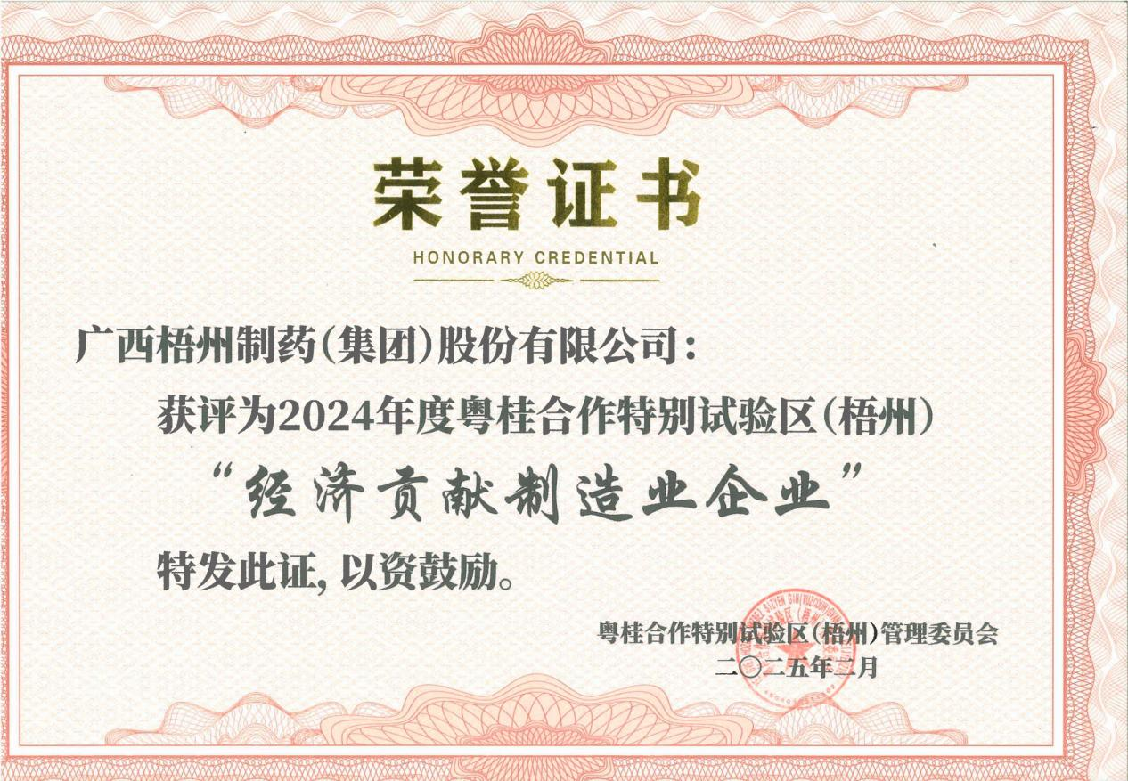 近日,粵桂合作特別試驗區(qū)(梧州)2025年茶話會隆重舉行。茶話會上,粵桂合作特別試驗區(qū)(梧州)管理委員會對2024年度園區(qū)內(nèi)的優(yōu)秀企業(yè)進行表彰,梧州制藥憑借在制造業(yè)領(lǐng)域的卓越表現(xiàn)和突出貢獻,榮獲“2024年度粵桂合作特別試驗區(qū)(梧州)十大經(jīng)濟貢獻制造業(yè)企業(yè)”稱號。