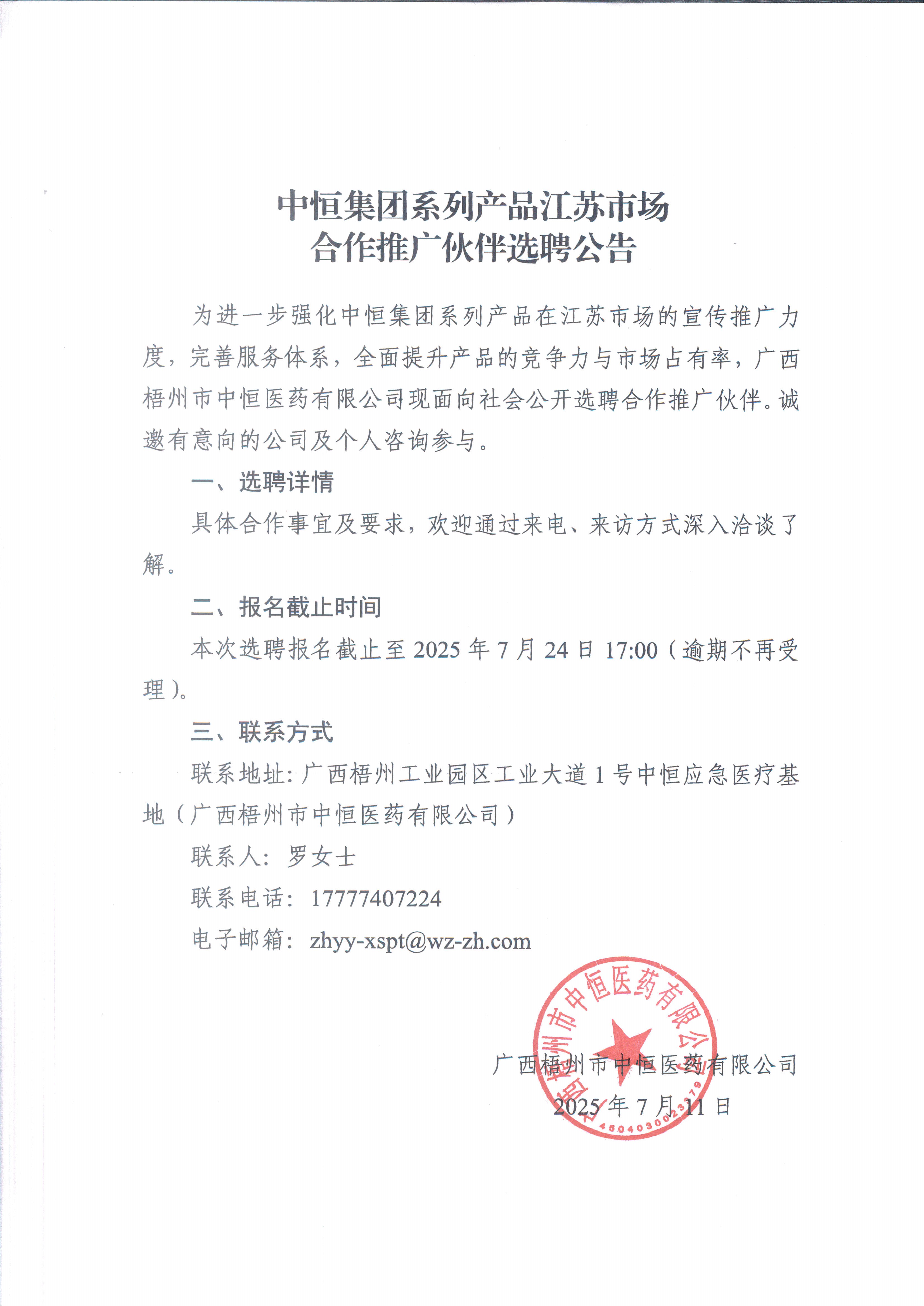 中恒集團(tuán)系列產(chǎn)品江蘇市場(chǎng)合作推廣伙伴選聘公告