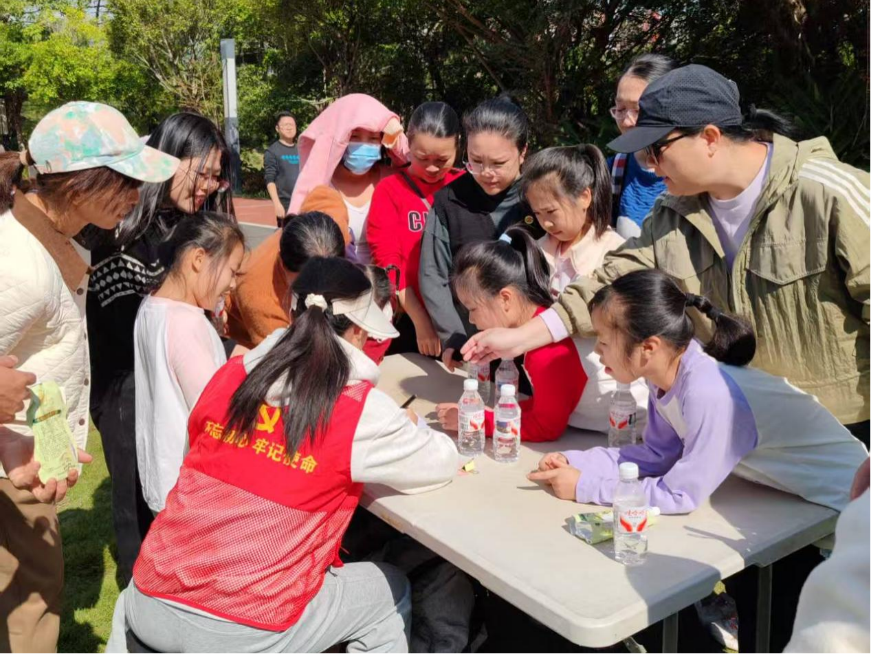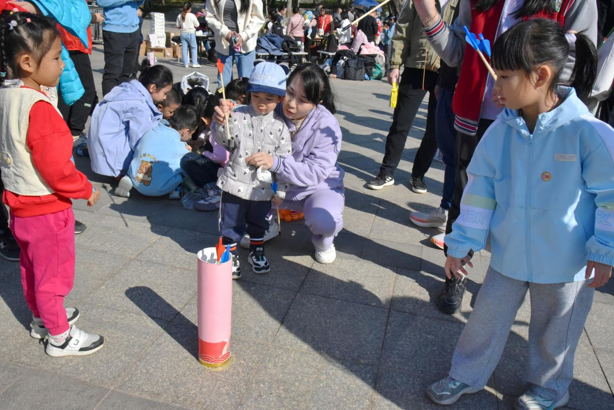 上午9時30分,活動正式拉開帷幕,一場場充滿趣味與溫情的親子游戲輪番上演?!爸樾腥f里”項(xiàng)目中,家長與孩子手持半圓槽拼接通道,小球滑落時共同默契重整,掌心相對間不僅傳遞著力量,更凝聚著親情;壺中“箭”寶環(huán)節(jié)融入傳統(tǒng)元素,家長們手把手帶領(lǐng)孩子瞄準(zhǔn)投擲,每一次成功入壺都引發(fā)全場歡呼;“筷子夾乒乓球”項(xiàng)目磨練耐心技巧,孩子們模仿家長動作小心翼翼夾球,有的家庭還創(chuàng)意發(fā)明“接力夾球”玩法,現(xiàn)場加油聲、歡呼聲交織成群。