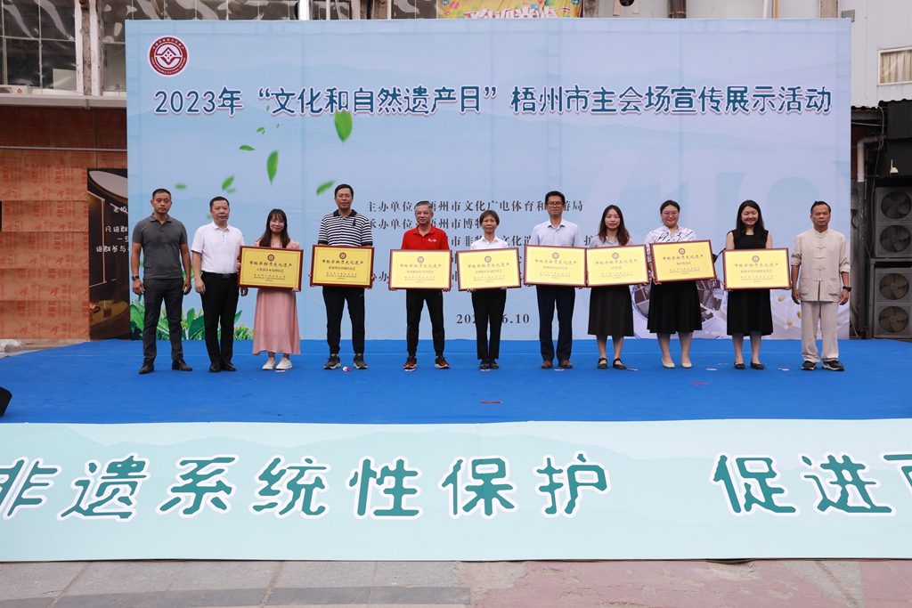 近日,在梧州市文化廣電體育和旅游局主辦的2023“文化和自然遺產(chǎn)日”梧州市主會(huì)場宣傳展示活動(dòng)中,梧州制藥中華跌打丸制作技藝獲授牌匾,成功入選梧州市第六批非物質(zhì)文化遺產(chǎn)代表性項(xiàng)目名錄。&nb