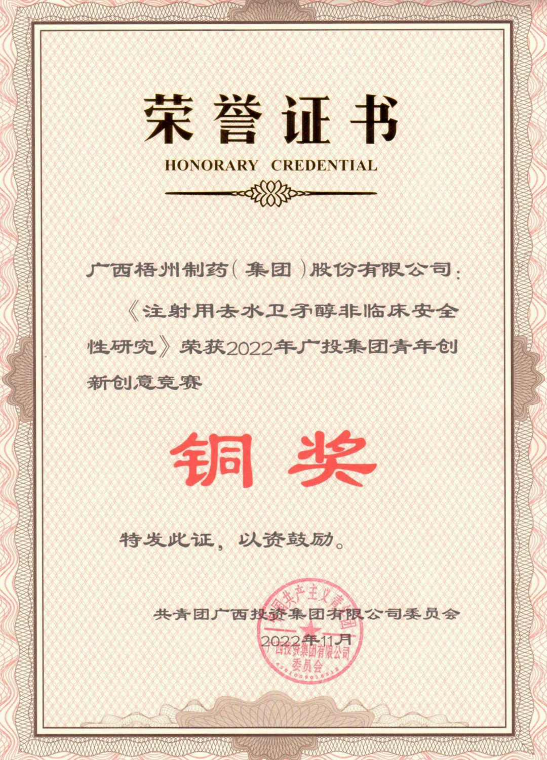 近日,由梧州制藥質量保證部組成的梧州制藥代表隊——“質量衛(wèi)士”隊,憑借項目《注射用去水衛(wèi)矛醇非臨床安全性研究》獲得2022年廣投集團青年創(chuàng)新創(chuàng)意競賽銅獎的表彰。本次競賽共有16個項目最終入圍決賽,通過視頻會議的